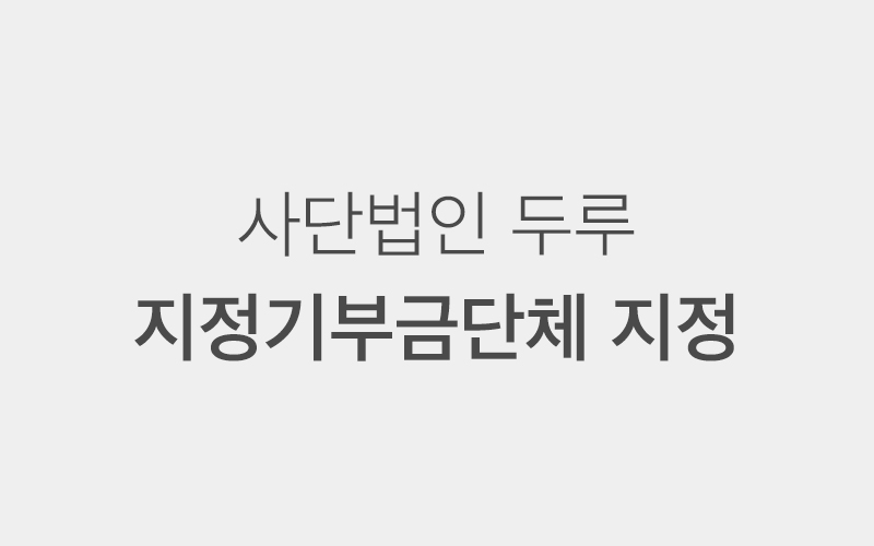 사단법인 두루가 2014년 12월 31일 「법인세법시행령」제36조제1항제1호사목 및 같은법 시행령 제36조제11항에 따라 기획재정부장관이 지정하는 지정기부금단체가 되었습니다.