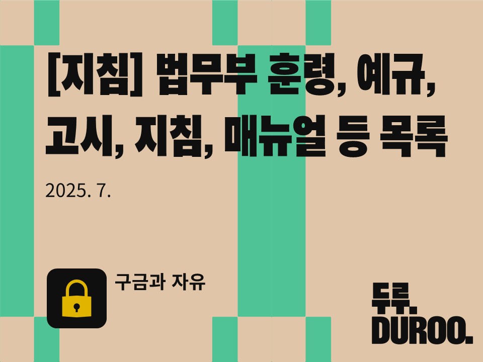 법무부 출입국ㆍ외국인정책본부 소관의 훈령, 예규, 고시, 지침, 매뉴얼 등의 목록입니다. 이 자료는 과거 정보공개청구, 의원실 자료요구, 소송 등 다양한 방법으로 두루에서 생성한 목록으로, 법무부 출입국ㆍ외국인정책본부에서 소관하는 모든 훈령, 예규, 고시, 지침, 매뉴얼을 포함하고 있는 것은 아닙니다. 여전히 제명조차 비공개로 운영되고 있는 내부 지침이 상당히 있을 것으로 추정됩니다. 두루에서 파악하고 있는 목록은 첨부 파일을 참고해 주시기 바랍니다.