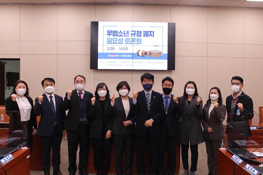 지난 3월 9일에는 국회의원 박완주ㆍ이규민ㆍ최기상, 정춘숙 국회 여성가족위원장, 한국아동인구환경의원연맹, 국제아동인권센터와 사단법인 두루가 공동주최로 ‘우범소년 규정 폐지 필요성’ 국회 토론회가 개최되었습니다. 원혜욱 인하대학교 법학전문대학원 교수가 좌장을 맡아 진행되었으며, 사단법인 두루 강정은 변호사는 ‘아동의 권리에 비추어 본 우범소년 개정방향’을 주제로 발제하였습니다.