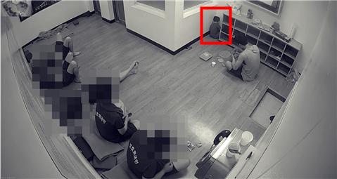 (사진: 제공된 성인용 식사를 거부하고 구석에 숨어있는 아동의 CCTV 사진)